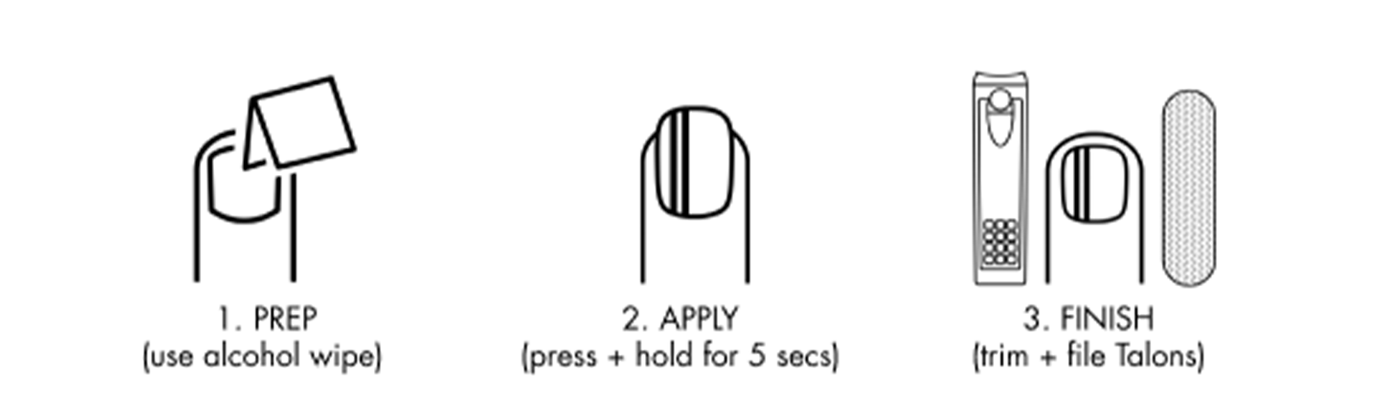 - Use alcohol wipe on nails to remove dust and oils, let dry before applying Talons.